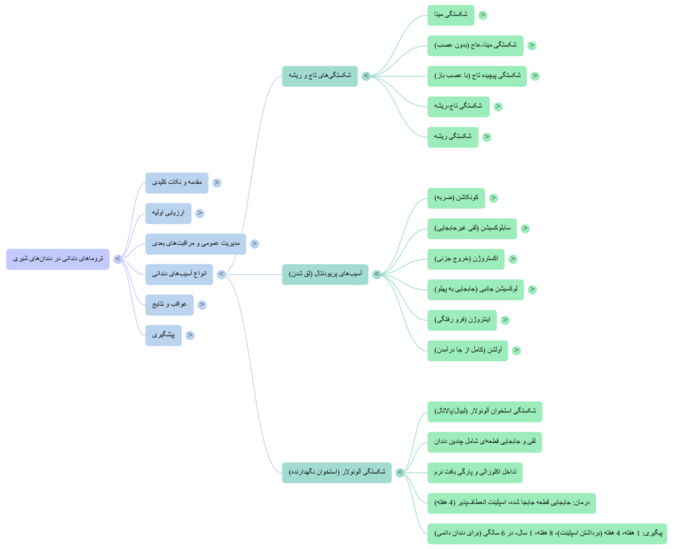 آسیب به دندانهای شیری در کودکان میتواند از ضربههای سطحی تا آسیبهای شدید به ساختار داخلی دندان متغیر باشد. انتخاب روش درمان به نوع آسیب، شدت آن، سن کودک و وضعیت دندانهای دائمی بستگی دارد. هدف اصلی درمان، حفظ سلامت دهان، جلوگیری از آسیب به جوانه دندان دائمی و کاهش درد و التهاب کودک است.